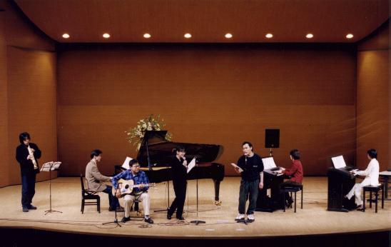 MDNWのみんなで、「だんご3兄弟」を熱演しました、、、、(^_^;) 左から、しんのすけさん(ソプラノサックス)、リョウさん(ピアノ)、TAKUさん(A・ギター)、 碧・sohchanさん(ボーカル)、ちくさん(エレクトーン)、ろみさん(エレクトーン)